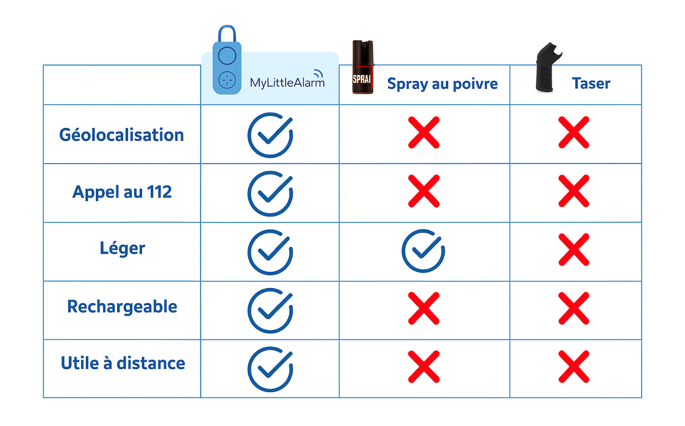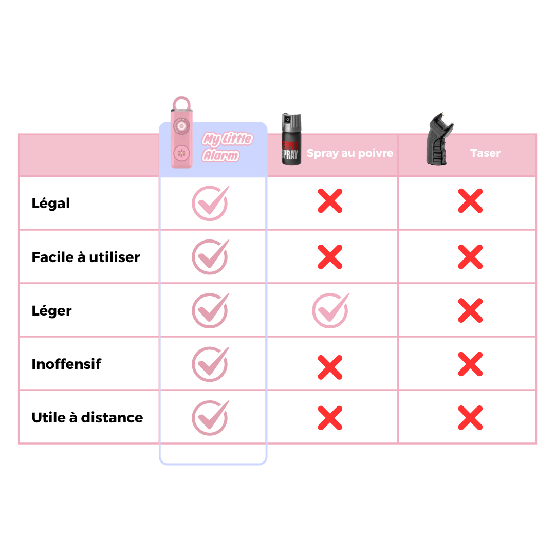 MyLittleAlarm se distingue des autres objets d'autodéfense, en offrant une utilisation simple, une approche non violente, et bien plus encore.